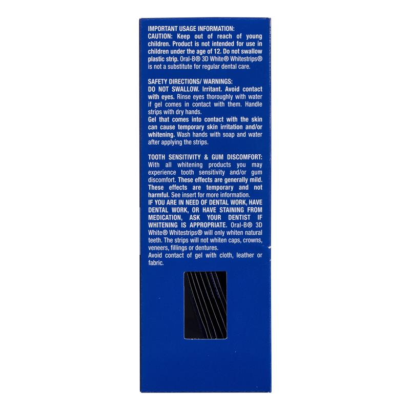 Oral-B 3D White Whitestrips visibly whiten your teeth, start seeing results in 5 days.