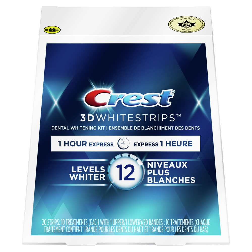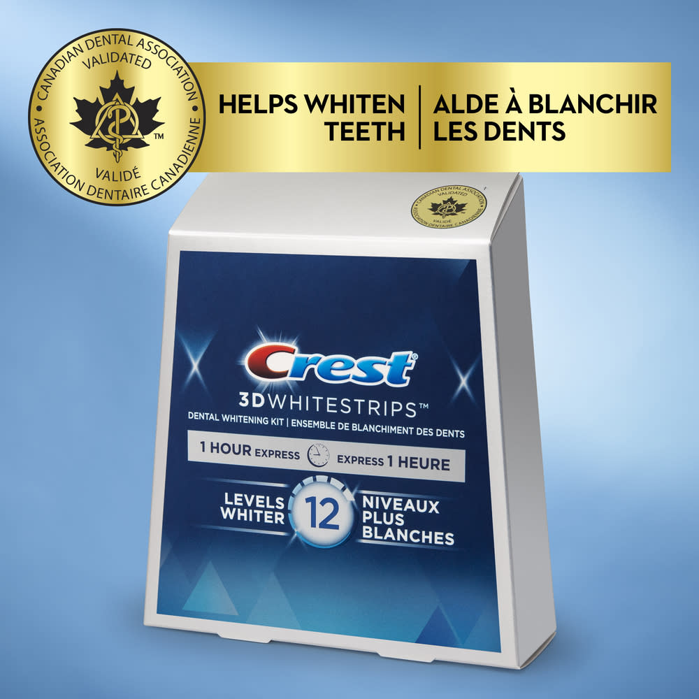 If you’re looking for fast teeth whitening, this is it! Get a noticeably whiter smile for that last-minute event with 1-Hour Express Whitestrips. Unlike brushing alone, Crest 3D White 1-Hour Express Whitestrips go beneath the enamel surface to remove years of stains. Enamel safe, 1-Hour Express Whitestrips will reveal same-day results for a noticeably whiter smile.