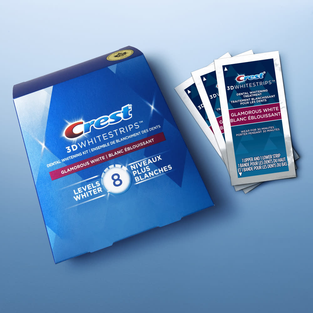 Think your whitening toothpaste is giving you the whitest smile you can get? Think again. Crest 3D White Glamorous White Whitestrips can dial up your dazzling smile 25X better than a leading whitening toothpaste.* Their no-slip grip means the strips stay put until you take them off, allowing you to talk and even drink water while you whiten. Use them once a day for 30 minutes to elevate your white smile to the next level.