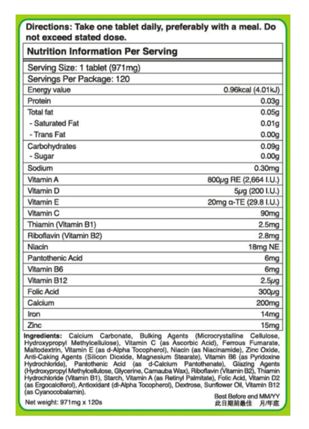 Supplements containing Vitamin D (in the form of ergocalciferol, D2) & Vitamin B12, as well as minerals such as calcium, iron, zinc & folic acid.