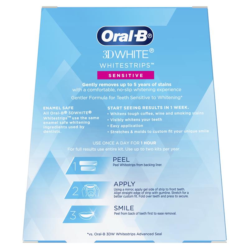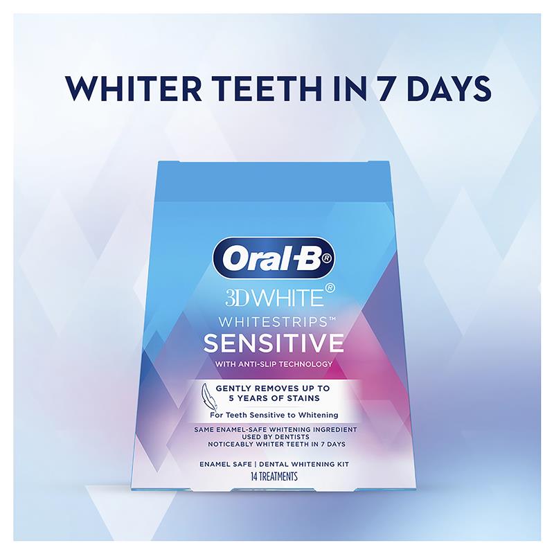 Want whiter teeth but worried that whitening treatments are not suitable for your sensitive teeth? New Oral-B 3DWhite Whitestrips Sensitive is designed for sensitive teeth to gently remove years of stains for whiter teeth in 7 days. Trust Oral-B to achieve whiter teeth with no worries